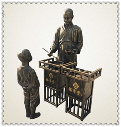 城市廣場玻璃鋼剃頭理發的古代人物雕塑