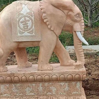晚霞紅石雕寺廟庭院浮雕如意大象雕塑