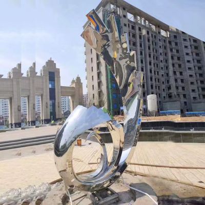 小區廣場 不銹鋼鏡面拋光抽象鳳凰噴泉水景觀雕塑