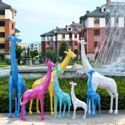 景區池塘邊玻璃鋼彩繪幾何長頸鹿雕塑