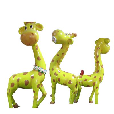 幼兒園卡通玻璃鋼彩繪長頸鹿雕塑