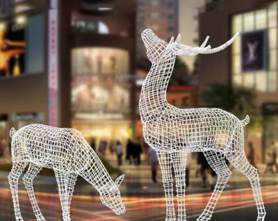 廣場不銹鋼鏤空抽象鹿景觀小品雕塑