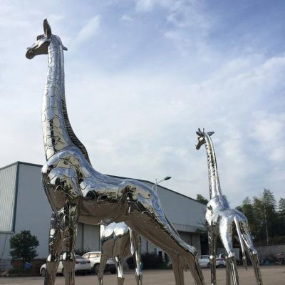 不銹鋼鏡面戶外廣場大型動物長頸鹿