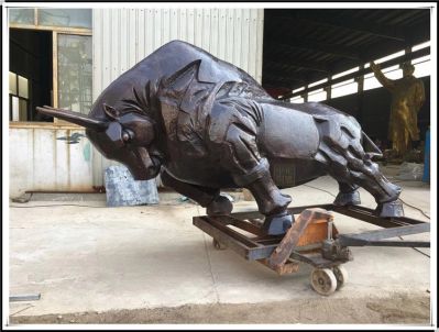 玻璃鋼仿銅華爾街牛雕塑小區(qū)園林?jǐn)[件