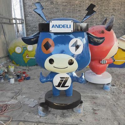 商場園林玻璃鋼卡通小牛公仔雕塑