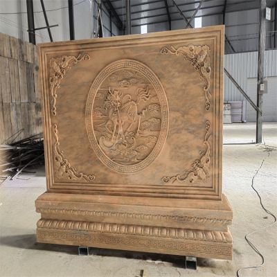 晚霞紅浮雕麒麟鎮宅招財庭院玄關擺放背景墻