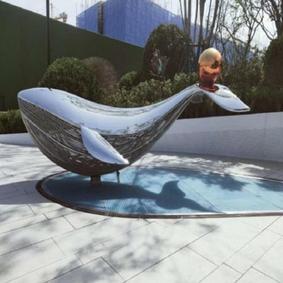 創(chuàng)意不銹鋼幾何鯨魚(yú)雕塑城市廣場(chǎng)擺放抽象景觀雕塑