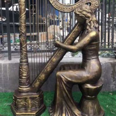 玻璃鋼仿銅西方人物演奏豎琴小品廣場戶外擺件
