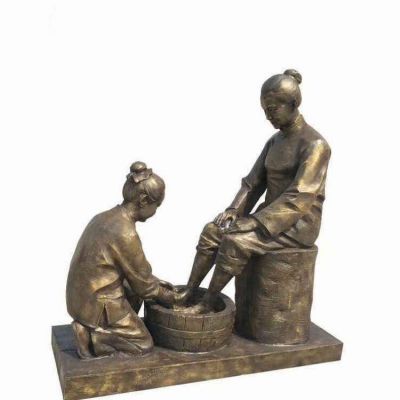 校園孝文化玻璃鋼仿銅洗腳人物小品雕塑