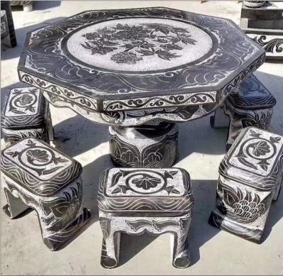 青石石雕園林公園庭院浮雕花朵石桌石凳擺件