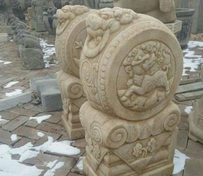 公園景區(qū)擺放漢白玉門墩仿古雕刻