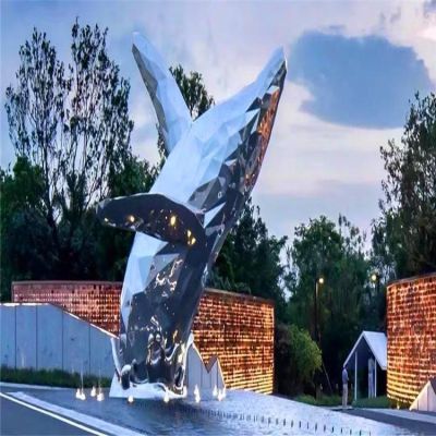 噴泉不銹鋼大型切面鯨出水景觀雕塑