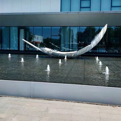 廣場不銹鋼大型噴泉水景羽毛景觀雕塑
