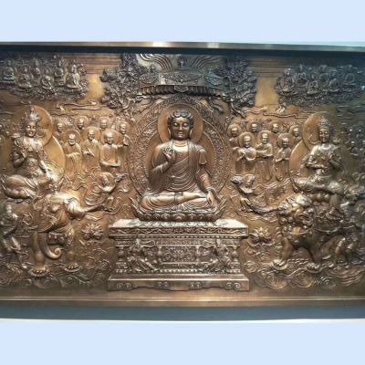 寺院裝飾擺放銅壁畫鎏金銅鐘雕塑