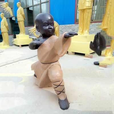 城市小鎮打太極爺孫玻璃鋼仿銅雕