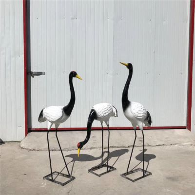 園林池塘玻璃鋼仿真仙鶴雕塑