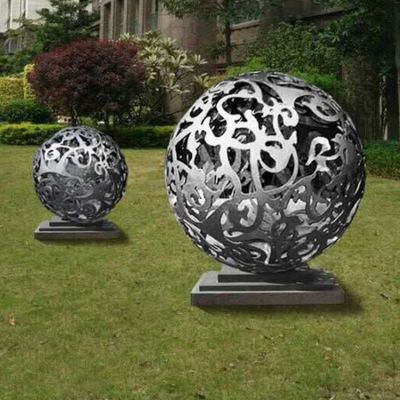 小區草地不銹鋼花紋鏤空球燈光亮化雕塑