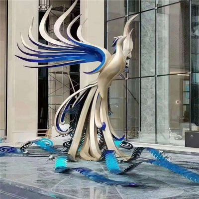 不銹鋼彩繪抽象鳳凰雕塑擺件