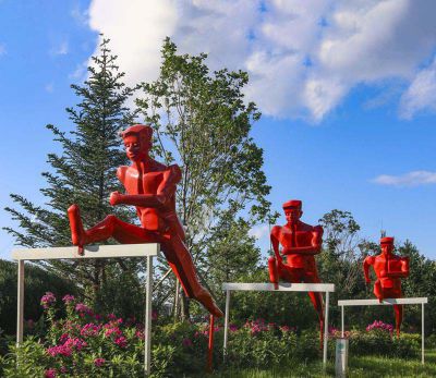 城市花園廣場彩繪不銹鋼跨欄運動人物系列雕塑