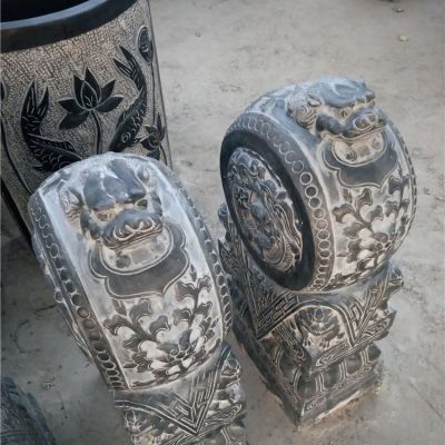 鎮宅辟邪青石浮雕獅子抱鼓石雕塑