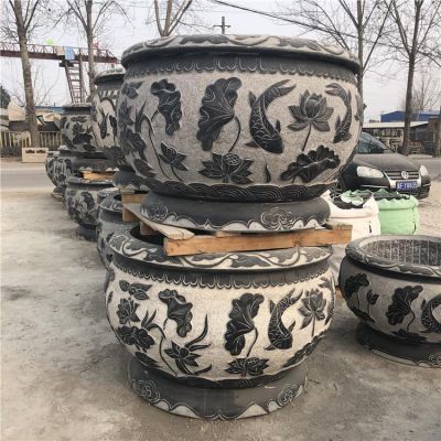 青石石雕戶外園林庭院浮雕魚缸雕塑