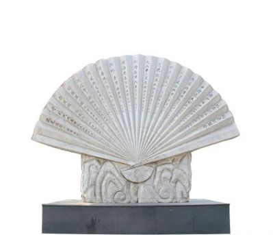漢白玉抽象浮雕花紋折扇雕塑