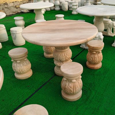 庭院晚霞紅雕刻歐式花紋休閑石桌椅