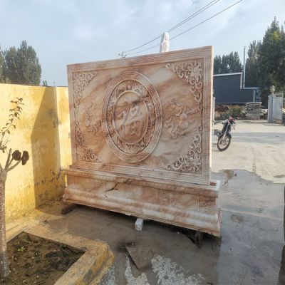 庭院室外擺放天然石材晚霞紅浮雕背景墻壁畫