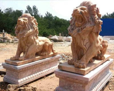 晚霞紅大理石石雕企業工廠獅子雕塑