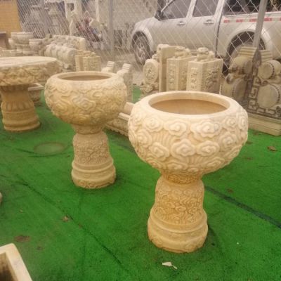 庭院小區晚霞紅大理石石雕浮雕養魚種花缸雕塑