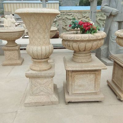 戶外別墅晚霞紅石雕花盆花缽雕塑
