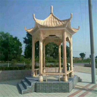 晚霞紅大理石戶外園林景觀六角涼亭雕塑