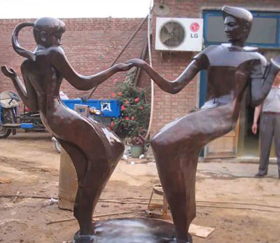 廣場花園情侶跳舞抽象人物玻璃鋼仿銅雕塑