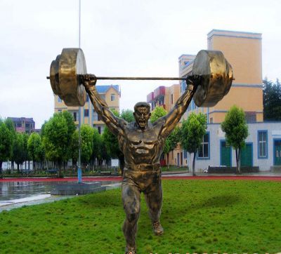 園林景區(qū)舉重人物主題玻璃鋼仿銅雕