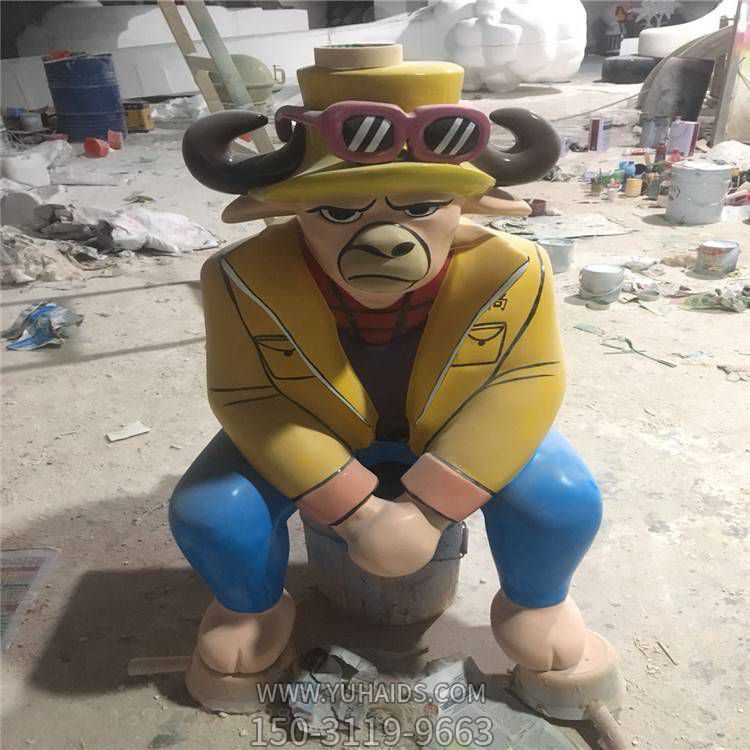 | 產品標題 | 游樂園擺放創意玻璃鋼卡通牛人物小品雕塑 |