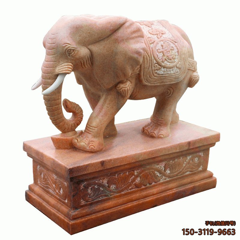 晚霞紅石雕大象_商場(chǎng)企業(yè)招財(cái)保平安動(dòng)物雕塑.詳細(xì)說明