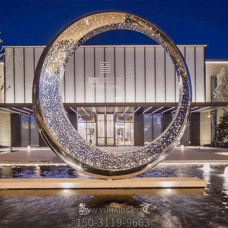 | 產品標題 | 房產園林擺放不銹鋼鏤空圓環 金屬月亮水景觀雕塑 |