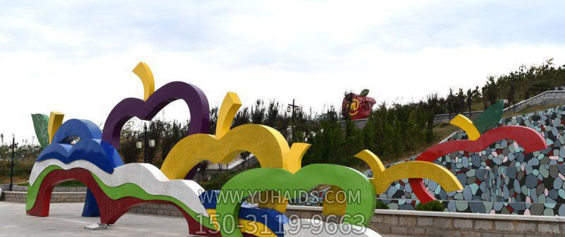 廣場不銹鋼抽象彩色蘋果雕塑.圖片展示