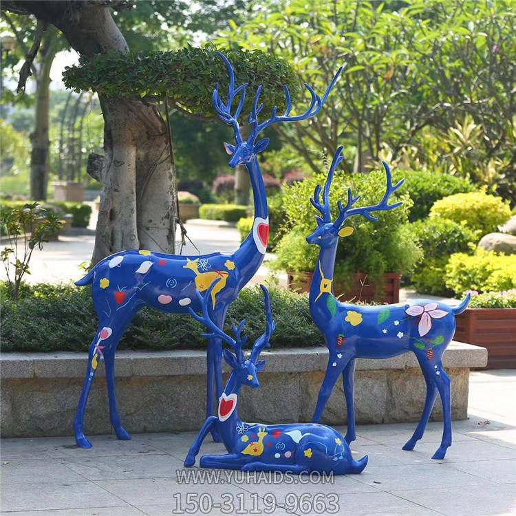 玻璃鋼彩繪抽象鹿小品城市街道景觀雕塑.圖片展示
