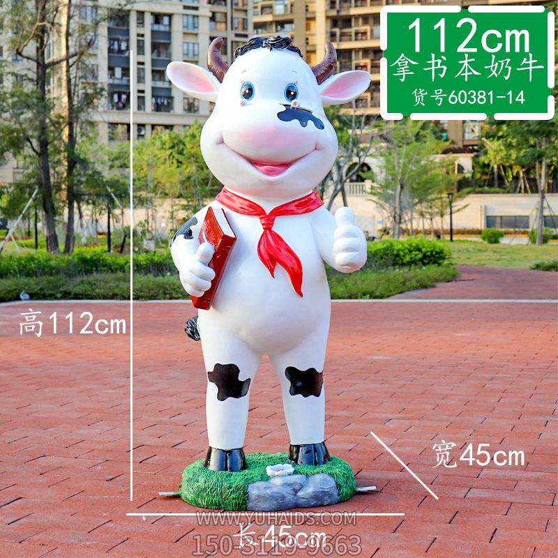 幼兒園一只拿書的玻璃鋼牛雕塑.參數說明
