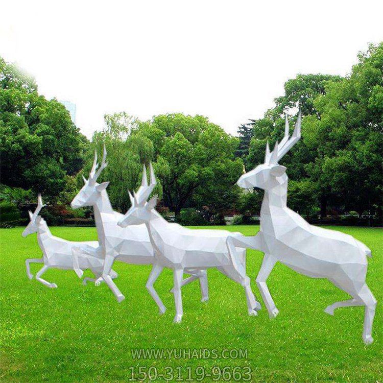 不銹鋼幾何園林廣場(chǎng)大型奔跑的動(dòng)物景觀梅花鹿雕塑.圖片展示