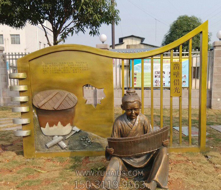 校園鑿壁借光兒童銅雕兒童雕塑.圖片展示