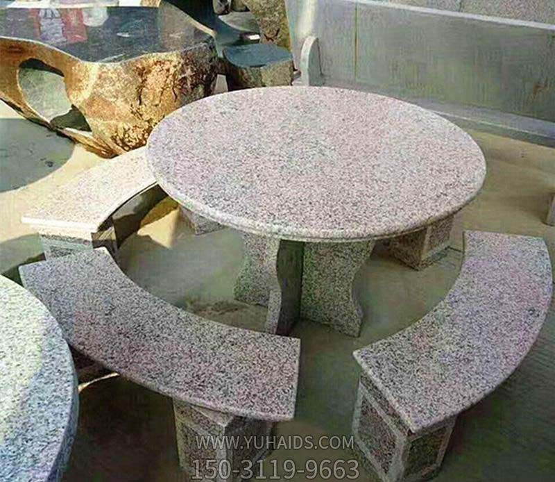 學(xué)校公園擺放半圓式桌凳花缸巖石雕塑.詳細(xì)說明