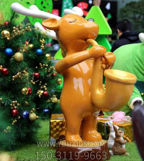 景區(qū)公園玻璃鋼卡通可愛吹薩克斯的鹿雕塑 景區(qū)公園玻璃鋼卡通可愛吹薩克斯的鹿雕塑