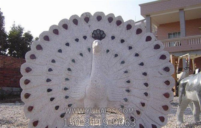 公園里一只驕傲的漢白玉石雕創意的孔雀雕塑.參數說明