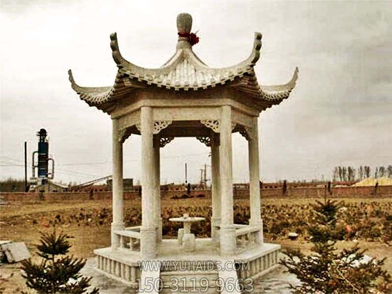 小區廣場擺放六角觀景休閑涼亭雕塑.圖片展示