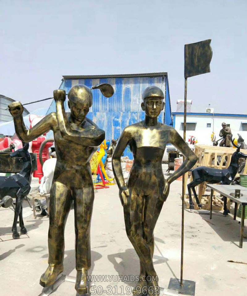 庭院打高爾夫球運動玻璃鋼仿銅雕塑