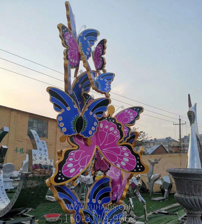 園林戶外不銹鋼彩繪群飛的蝴蝶雕塑.參數說明