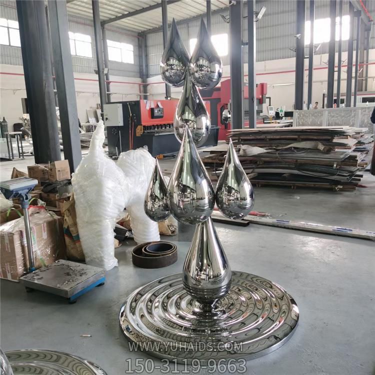 不銹鋼鏡面創意水滴雕塑酒店小區戶外水景擺件