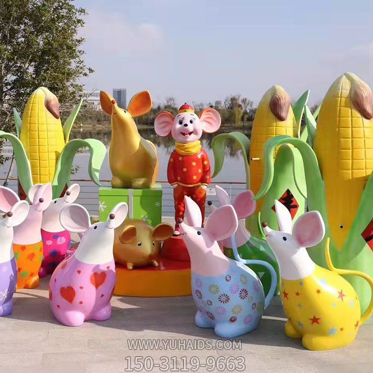廣場動物玻璃鋼卡通十二生肖老鼠雕塑